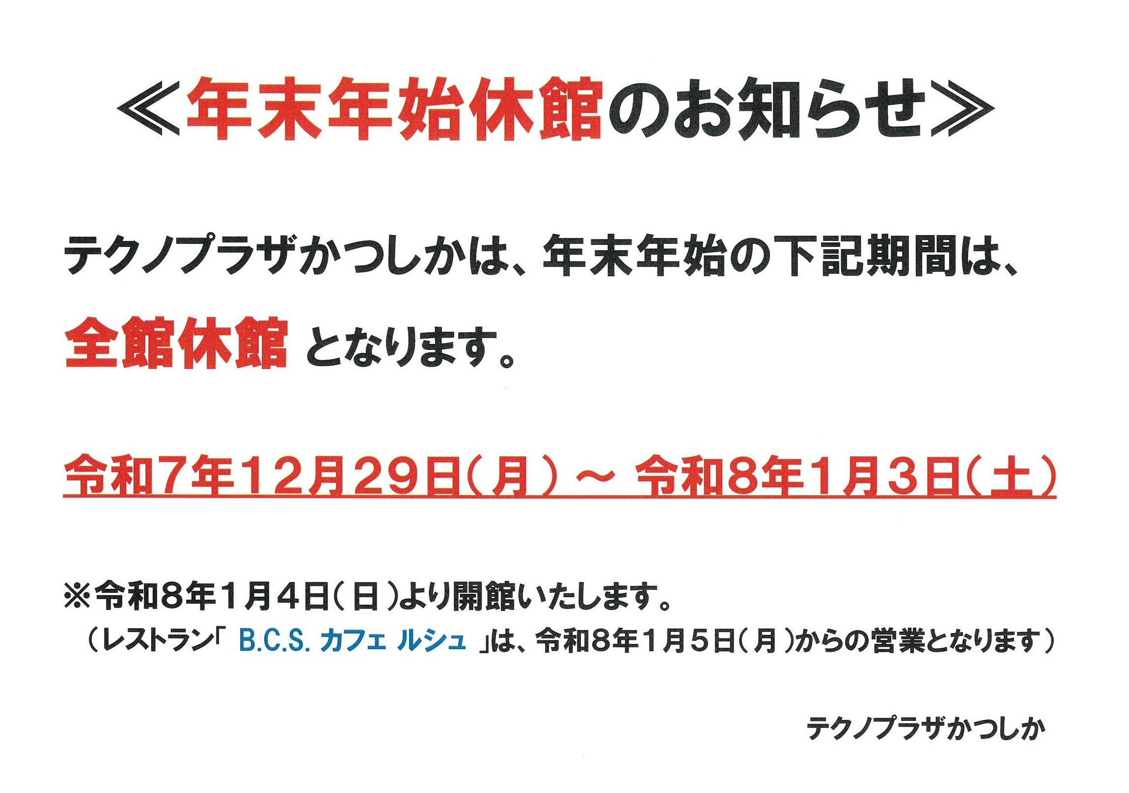 平素よりテクノプラザかつしかをご利用いただきましてありがとうございます。